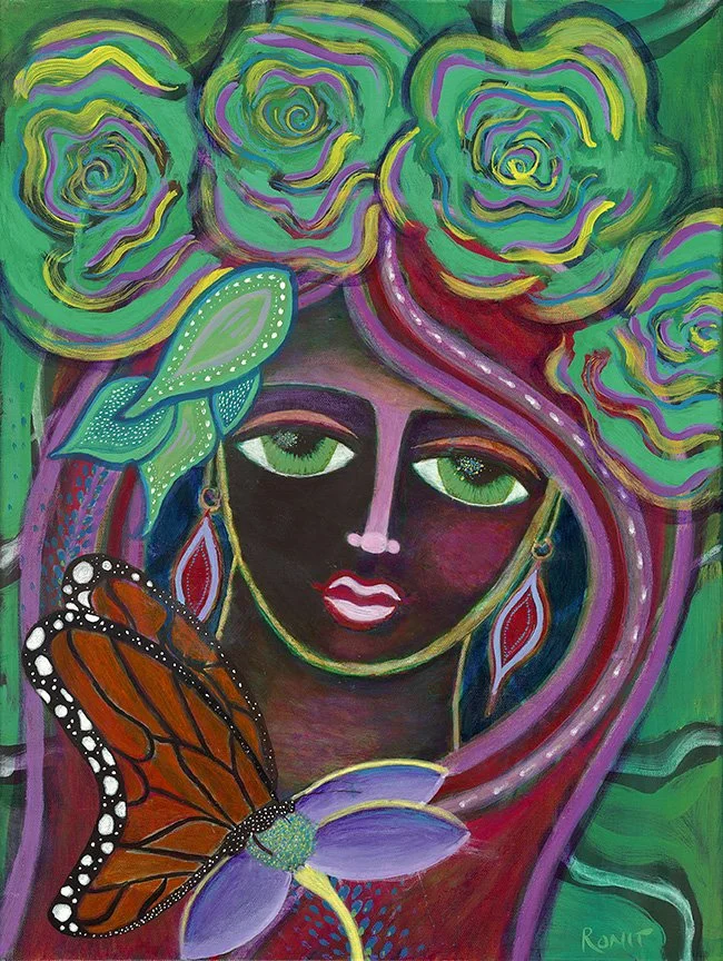 I’m Ronit Ashkenazi—a visionary artist based in Santa Fe, New Mexico. I create intuitive, sacred feminine paintings using acrylic on canvas. My work explores themes of soul, beauty, embodiment, healing, integration, freedom, and expression.